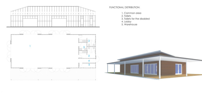 One floor building. STEEL FRAME construction system, with structure of cold-formed lightened galvanized profiles.